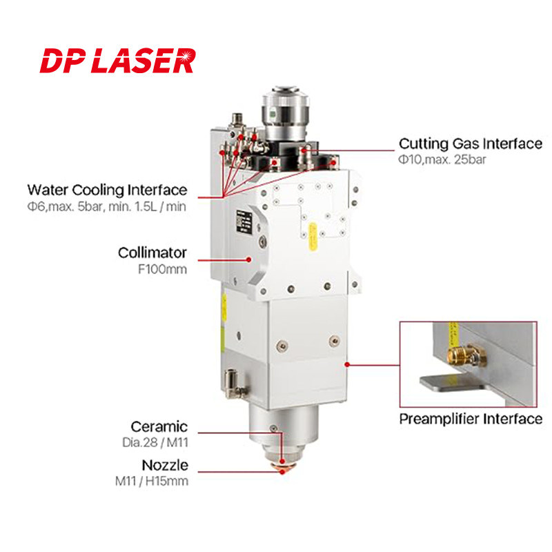 Δομή ψύξης: Η κεφαλή κοπής διαθέτει δομή ψύξης τόσο για τη μονάδα ευθυγράμμισης όσο και για τη μονάδα εστίασης.Χρησιμοποιεί ψύξη αέρα για να προστατεύει το ακροφύσιο, το κεραμικό μέρος και να παρατείνει τη διάρκεια ζωής τους.